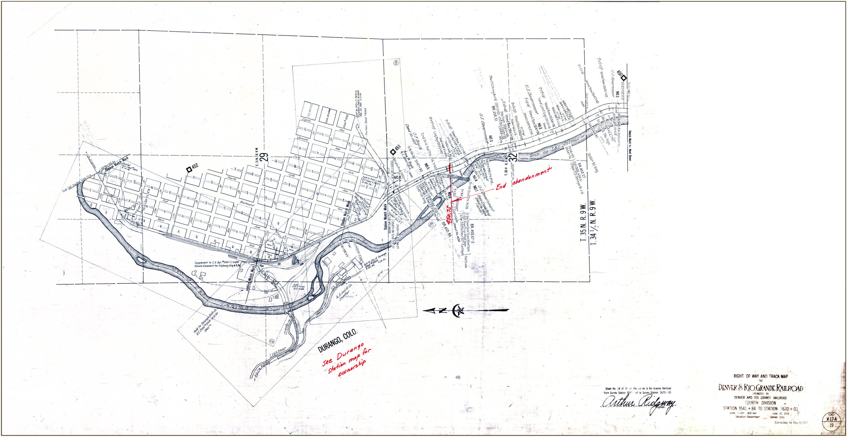 Station 3541+84 to Station 3670+03 (i.e., of Durango) has been digitized.