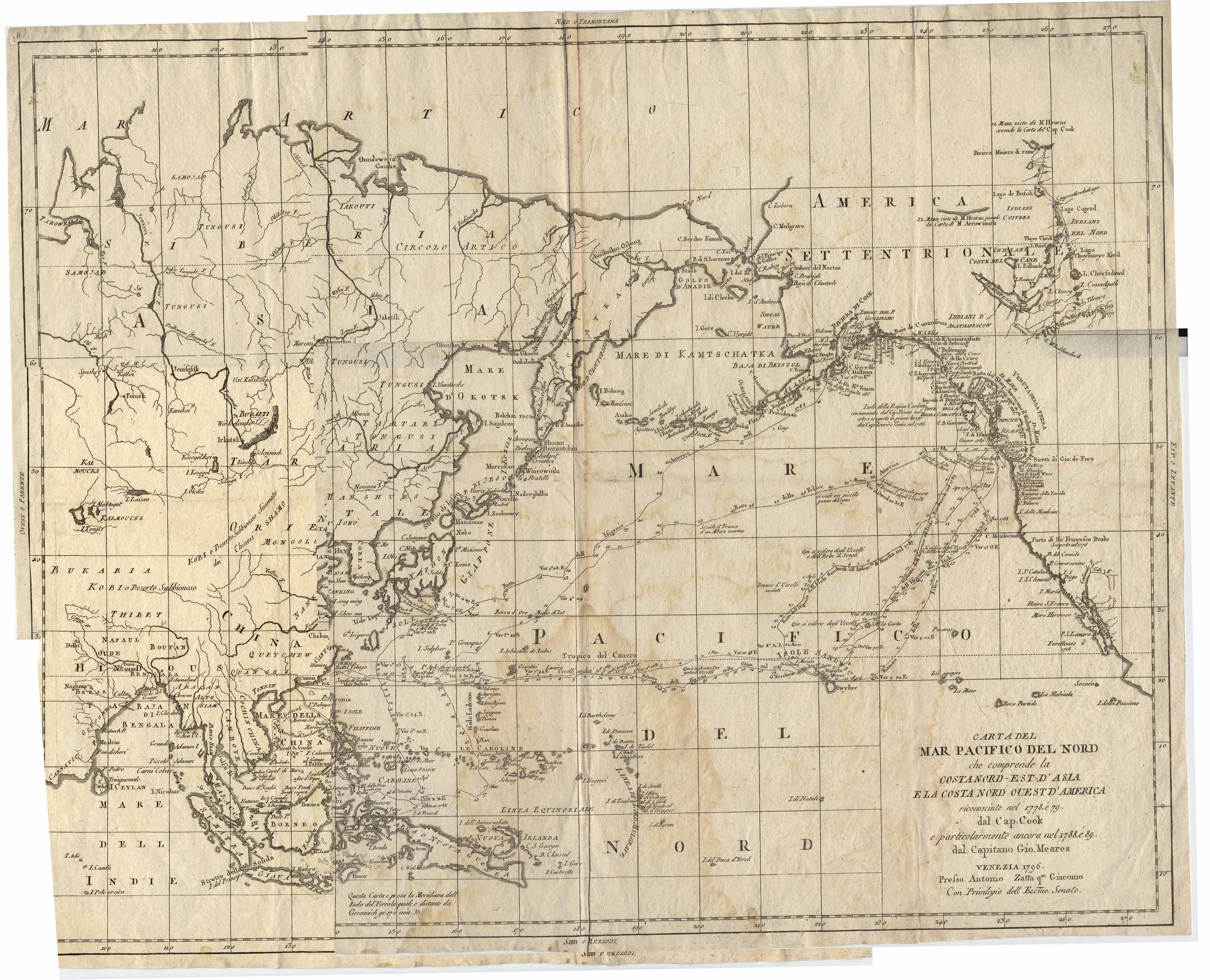 the routes of the explorations by Cook and Meares, and shows locations of some