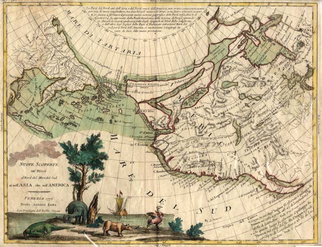 Scoperte De'Russi al Nord del Mare del Sud si nell Asia, che nell America [map