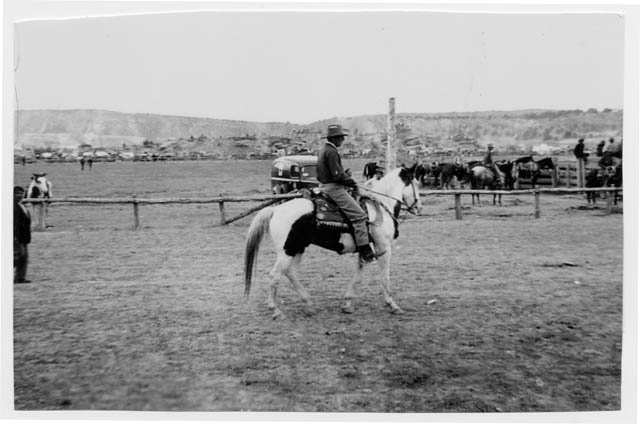 E. Reeseman Fryer riding his favorite horse, Witch, to meet with Navajo
