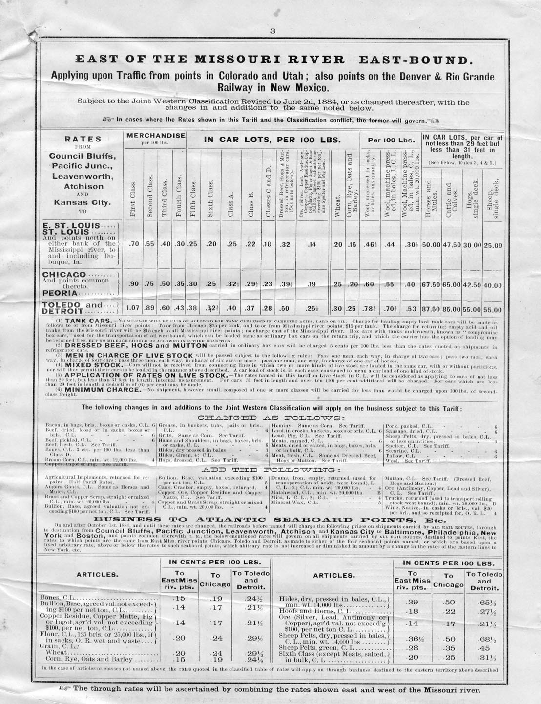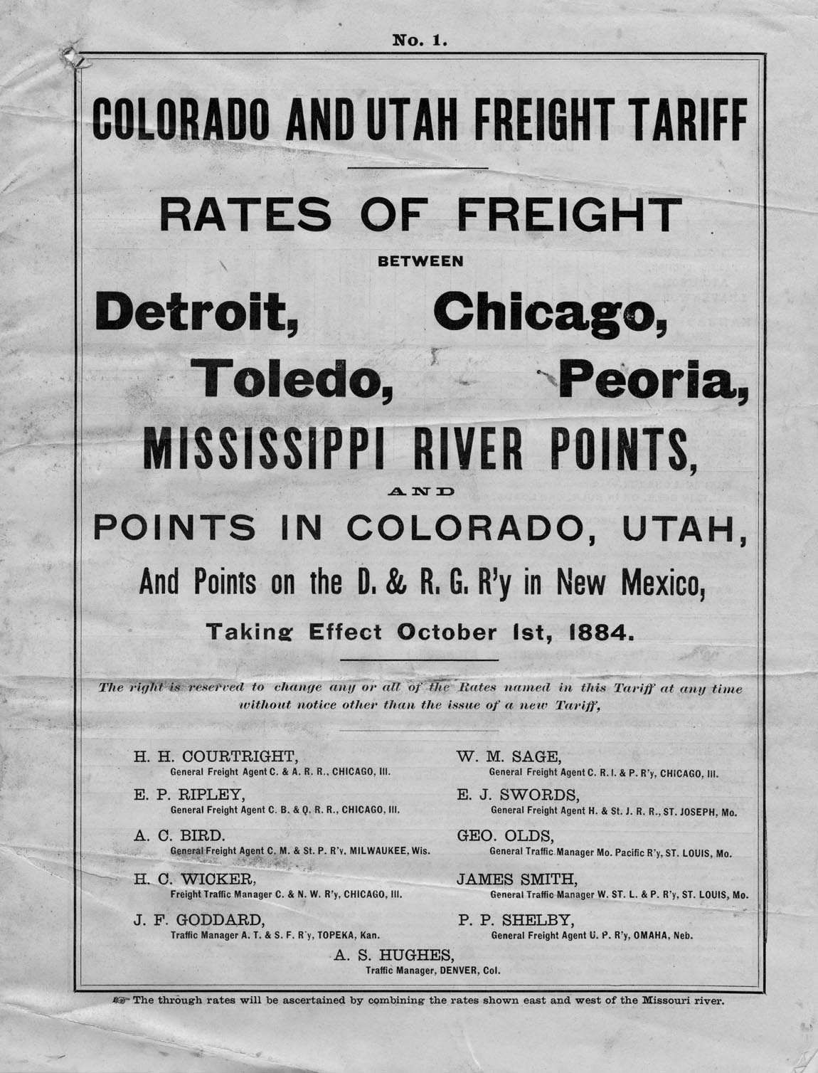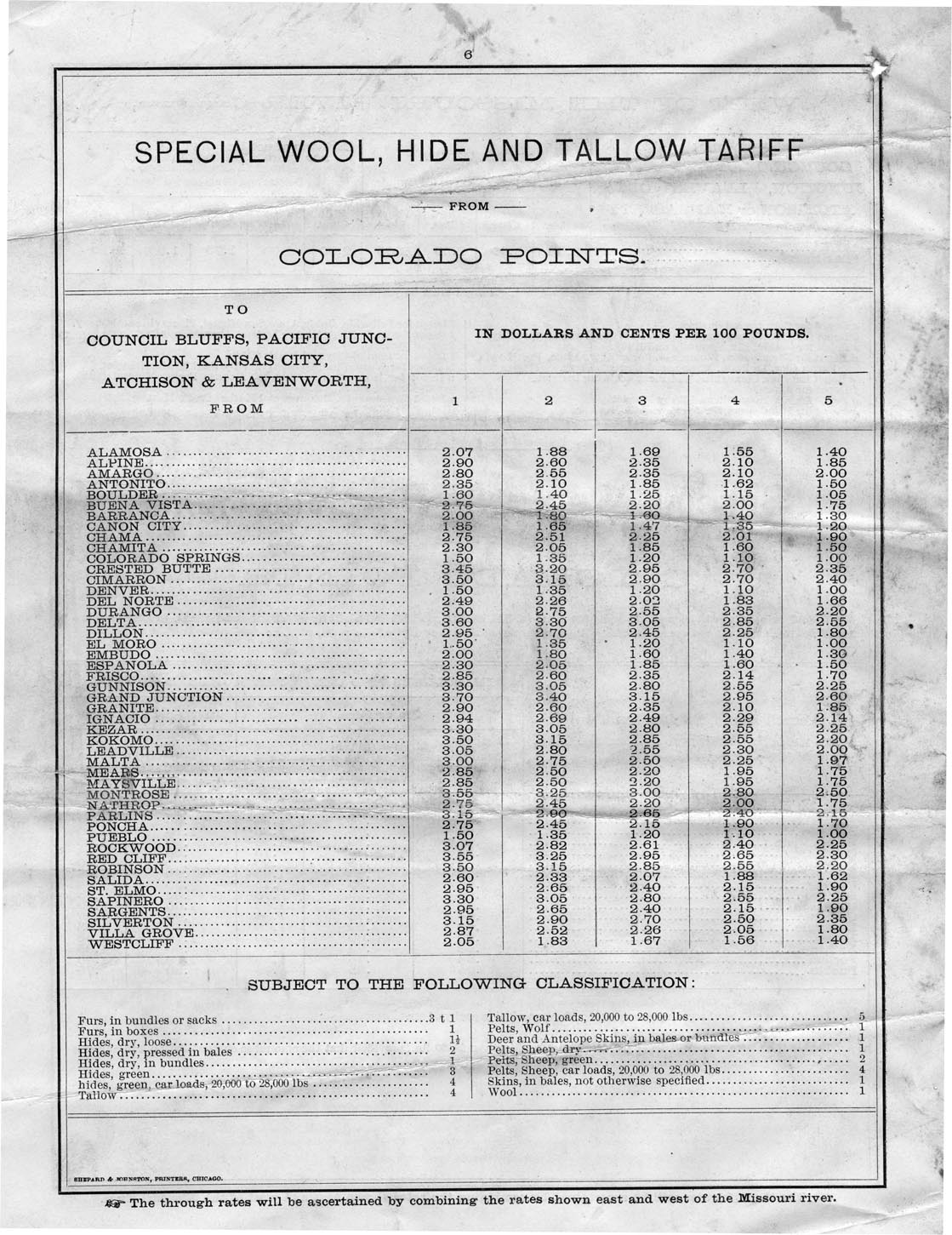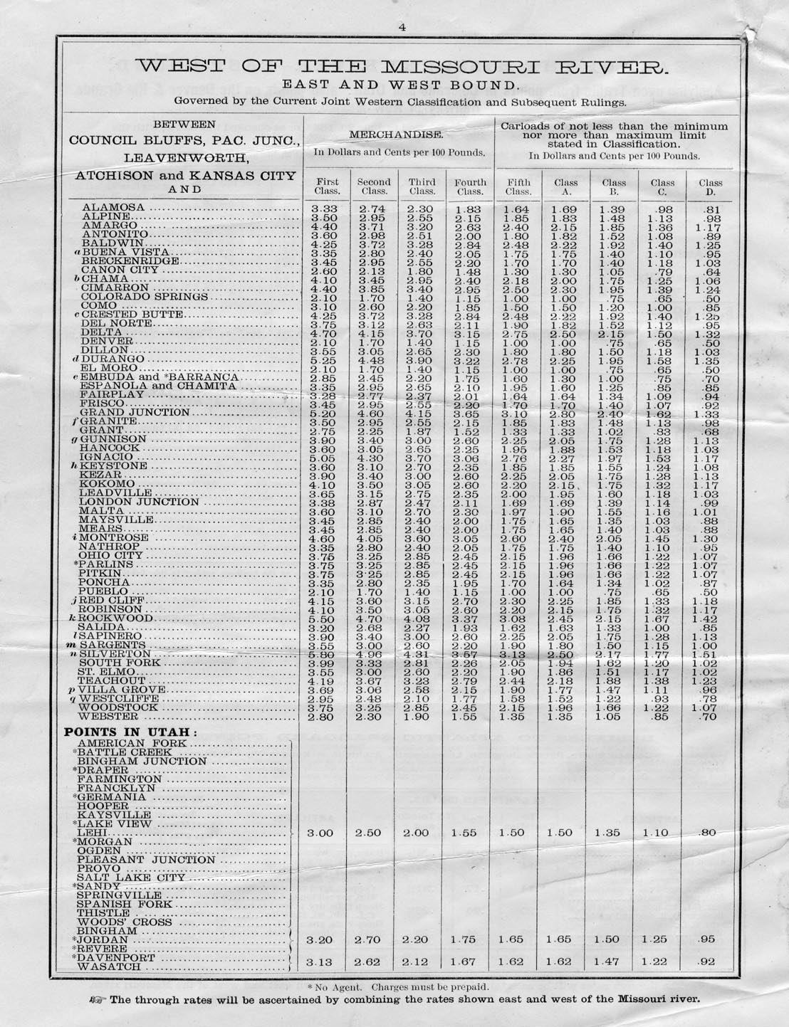 Colorado and Utah freight rates table,