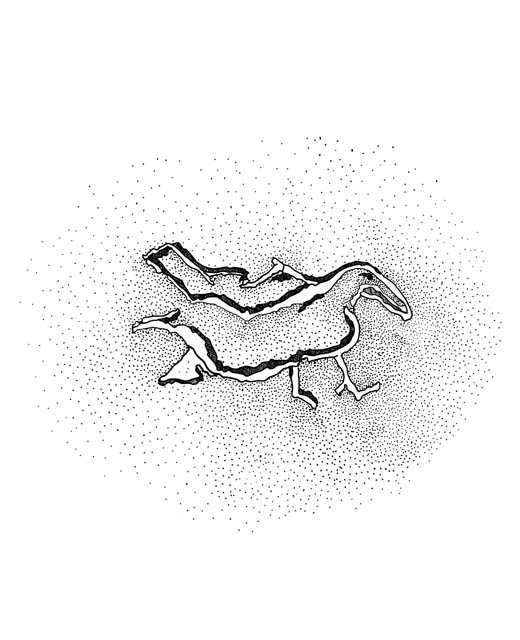 | This is a drawing of an isolated figure of a crow. It stands above and to the right of the doorway into cave Room 93/3 in Room Cluster II. |