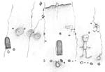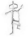 This round headed kachina-like figure with tiny body, arms, and legs may be found above Room 41/2. | ![]() |