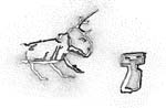 | 103 | Animal with Small Rectangular Figure, Room Cluster V at Long House | The animal facing a small rectangle headed kachina figure above Room 182/3 in Room Cluster V appears to have antlers, yet its body and head seem much too bulky for a deer, pronghorn antelope, or elk. | ![]() |