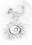This small kachina figures typifies the detail shown on all the figures on the walls of the natural chimney above Room 127/3 in Room Cluster III. | ![]() |