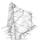 | 45 | Flat head kachina mask at Long House | This drawing of a simple kachina mask petroglyph occurs at the upper left of the mask panel above Room 166/2a. | ![]() |