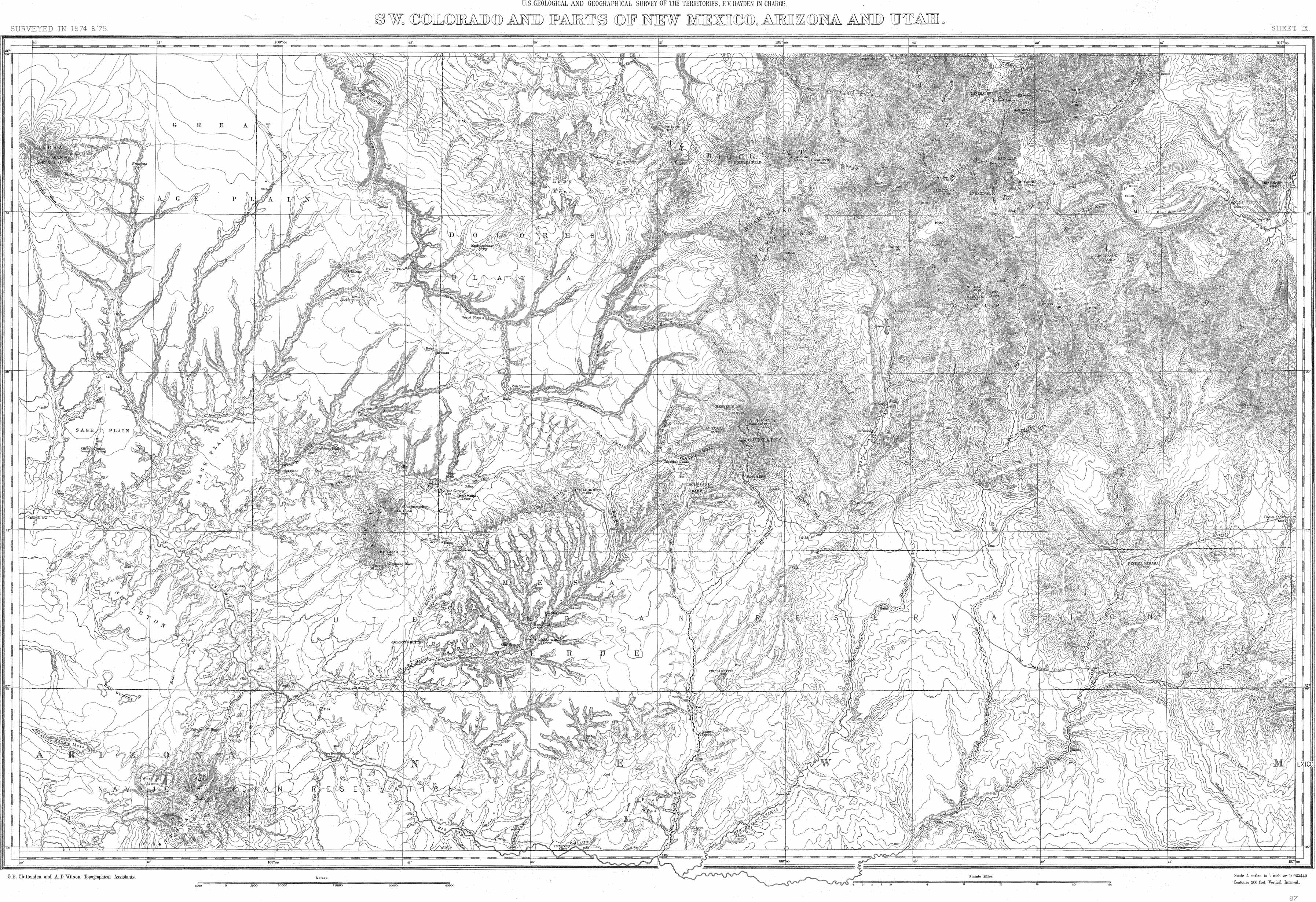 This map forms part of the Hayden 1877 Survey of Colorado and adjacent territories, collection C 004, at the Center of Southwest Studies.