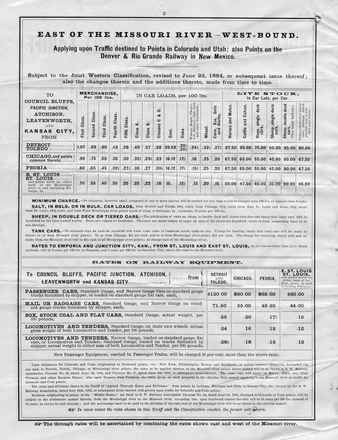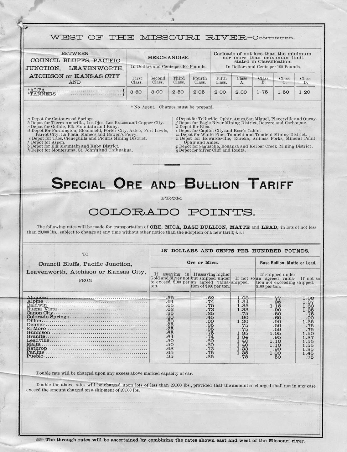 Colorado and Utah freight rates table,
