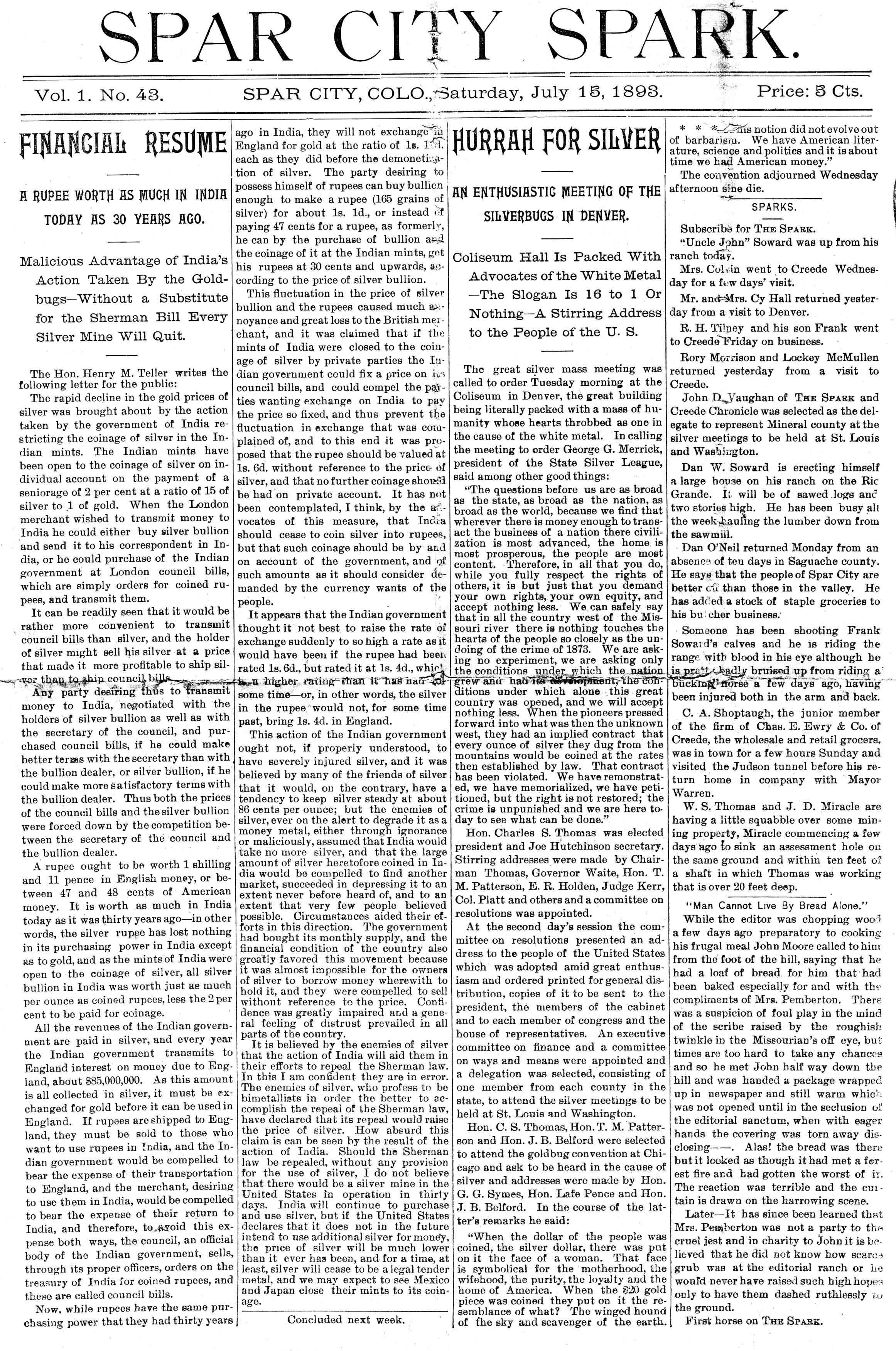 | This is page 1 of this issue from this daily (?) newspaper. Spar City is south of Creede, Colorado. |