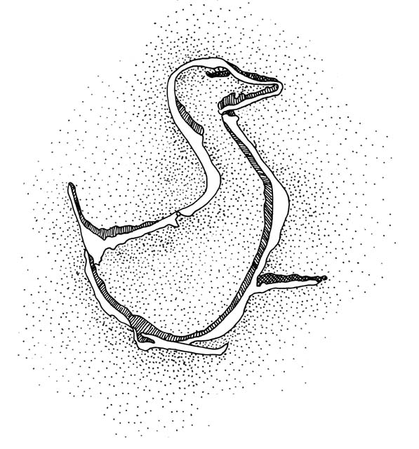 This is a drawing of a small duck waddling along the east end of Room 85/2 in Room Cluster II..