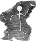 This petroglyph above Room 85/2 represents either a kachina with wings or an angel. In the latter case, it would denote knowledge of Christianity following Spanish contact, the sole case we observed in Long House. | ![]() |