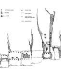 | 92 | Triangular Kachina Mask, Room Cluster V at Long House | Kachina masks exhibit all the same shapes as the heads on kachina figures except for the rectangular form. This triangular mask with eyes, nose, and mouth occurs in the center room above Room 166/2a as part of the mask panel in Room Cluster V. | ![]() |