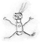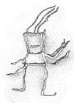 This round headed kachina-like figure with tiny body, arms, and legs may be found above Room 41/2. | ![]() |