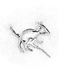 | 115 | High Cliff Panel above Talus House | On yet another high cliff section above the Talus House in Frijoles Canyon stands a small panel of rock art. In the center is a circle with a coyote either balancing on top of it or holding it (a coyote baying at the moon?). A group of serpents and a possible bird complete this panel.B | ![]() |