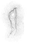 This small kachina figures typifies the detail shown on all the figures on the walls of the natural chimney above Room 127/3 in Room Cluster III. | ![]() |