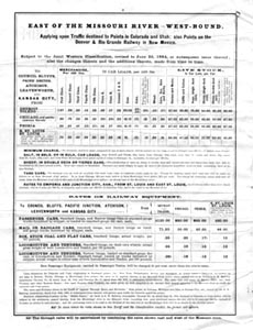 1.5              Rio Grande Railroad system fare rates, freight rates, and schedules, 1884-.  1 folder, in box 2.