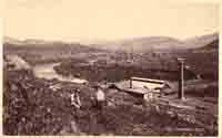 A black and white view of the Animas River flowing through a canyon between Durango and Silverton, Colorado. Published by Keystone View Company (Meadville, Pa.). Copyright 1898 by B. L. Lingley. |